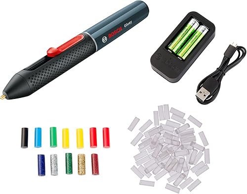 Bosch Akku Heißklebestift Gluey Smoky Grey (mit 20 Klebesticks, im Karton) grau + Bosch 2608002004 Mini Sticks 70tlg. (Transparente Klebesticks, Zubehör für Heißklebestift Gluey)