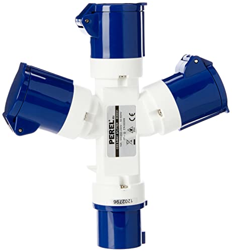 Perel Stromverteiler, 16 A/230 V, 3500 W, CEE-Stecker auf 3 x CEE-Kupplung, für innen und außen, ABS, blau
