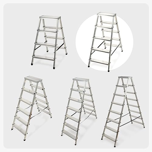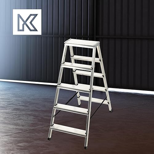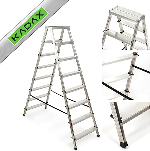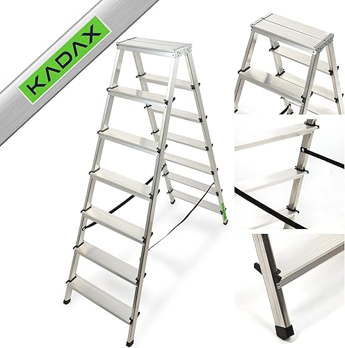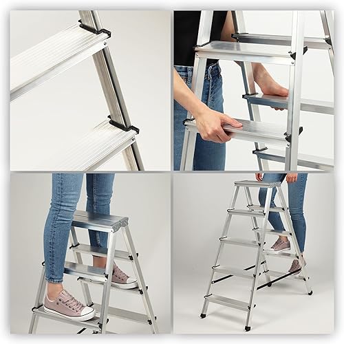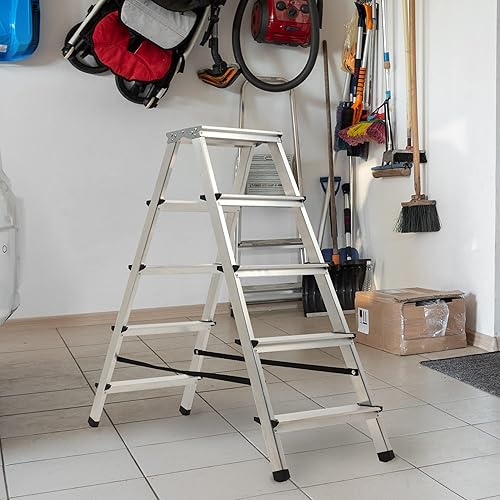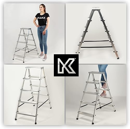 KADAX Haushaltsleiter, Trittleiter in 5 Versionen, Klapptritt mit Tragfähigkeit bis 125kg, Klappbare Beidseitige Mehrzweckleiter, Aluleiter mit rutschfesten Füßen (5 Stufen)