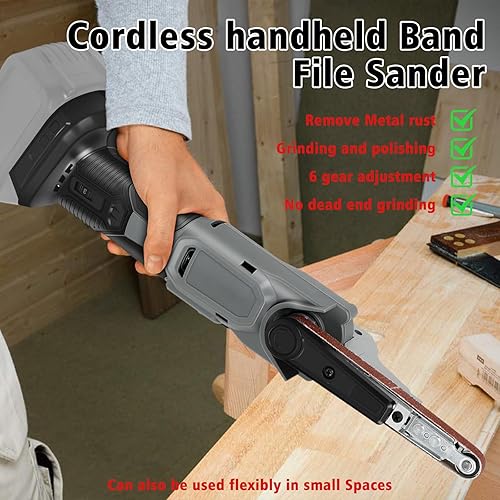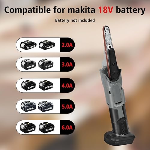 Akku Bandschleifer 10x330mm für Makita 18V Akku, Akku-Bandfeile 18 V mit 3 Schleifbändern, 6 Geschwindigkeiten, 35° Einstellbare, 300W Elektrische Feile zum Polieren von Holz und Metall (ohne Akkus)