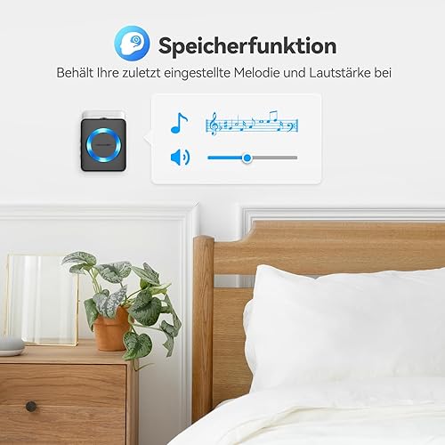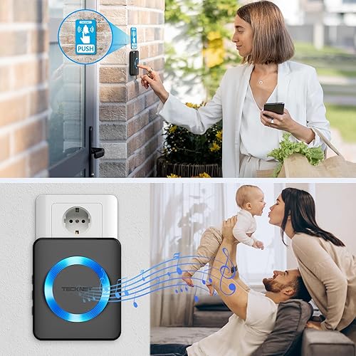 TECKNET Funkklingel, IP65 Funk klingel Set Aussen Wasserdicht, Kabellose Türklingel 400m Reichweite, Haustür Klingel kit mit 1 Plug-In-Empfänger und 1 Sender, 60 Melodien doorbell Mit LED-Blitz