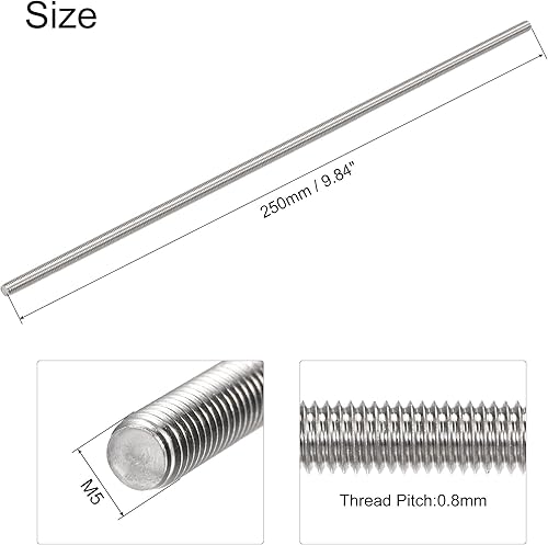 sourcing map 4 Stück Voll Gewindestange M5 x 250mm 304 Edelstahl Rechtsgewinde