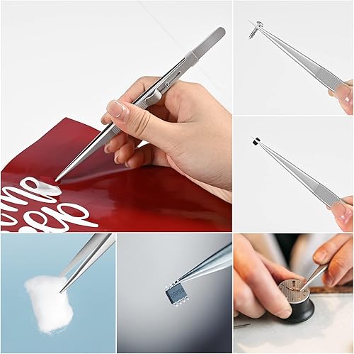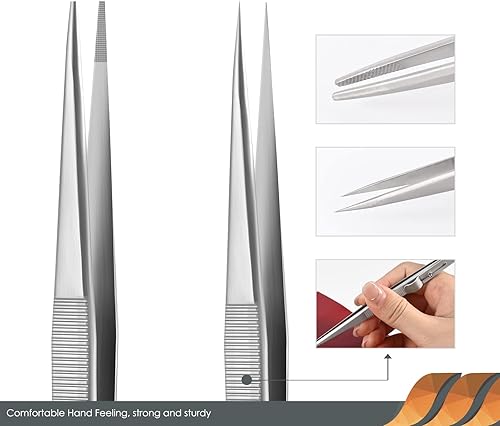 EHDIS ESD 2 Stück Pinzette Set, Abschließbar, Anti-Statik-Edelstahl Edelstahl Präzise ESD Pinzette, 2 gerade für Reparatur Werkzeug für Elektronik, Schmuckherstellung, Industrie