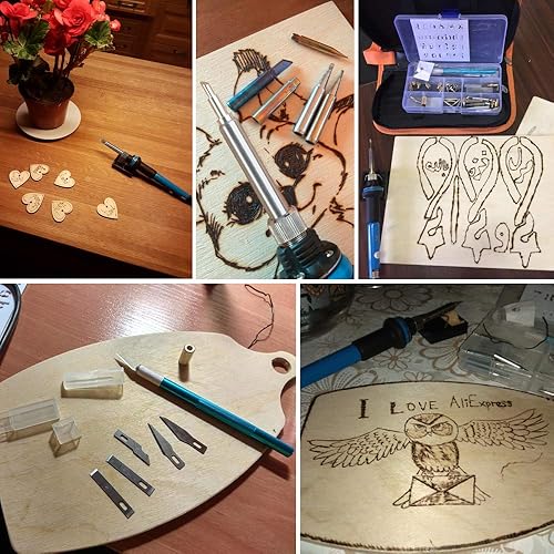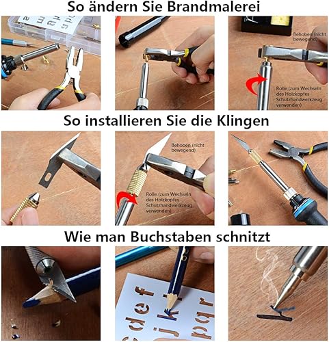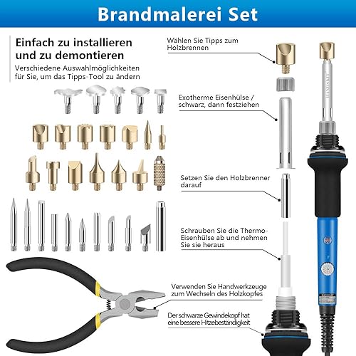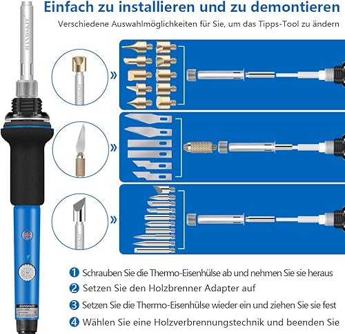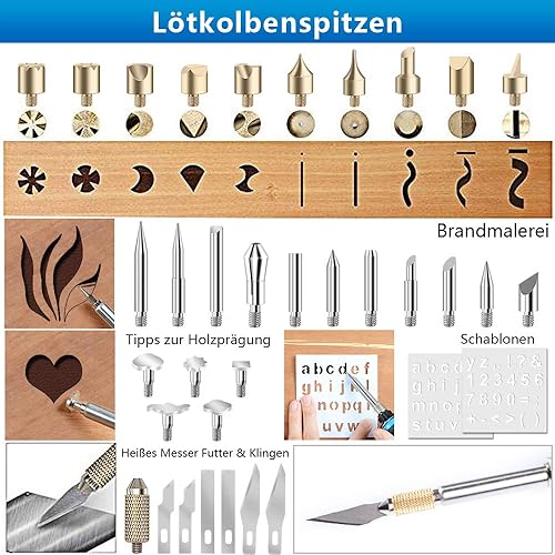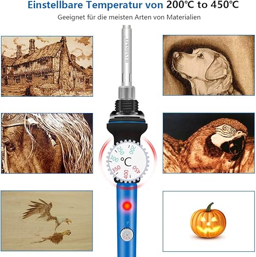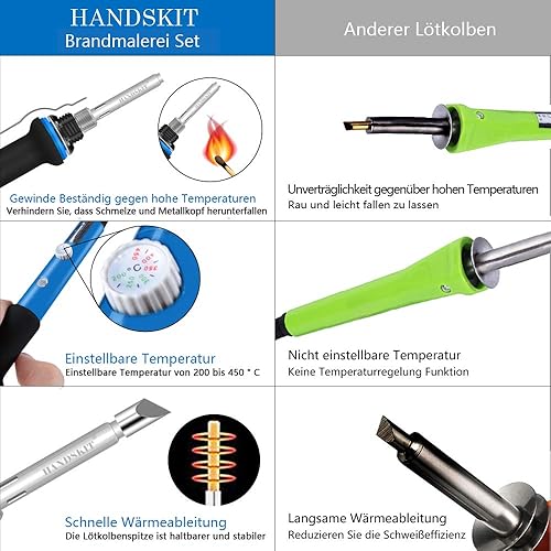 HANDSKIT Bleistift Brandmalerei Lötkolben Set, 42PCS Brandmalkolben mit einstellbarer Ein/Aus-Schalte, mit 60W Temperatur 220-450 °C, Holzbrandmalerei für Profi Hobbybastler