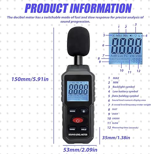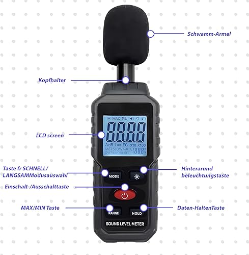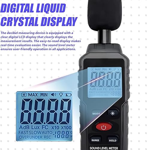 WIYETY Dezibel Messgerät: Schallpegelmessgerät, Digital Tragbare Schallpegelmesser 30dB bis 130dB mit LCD-Display, Lautstärkemesser Digital Tragbar, Geräschmessgerät, für Büro, Baustelle, Fabrik