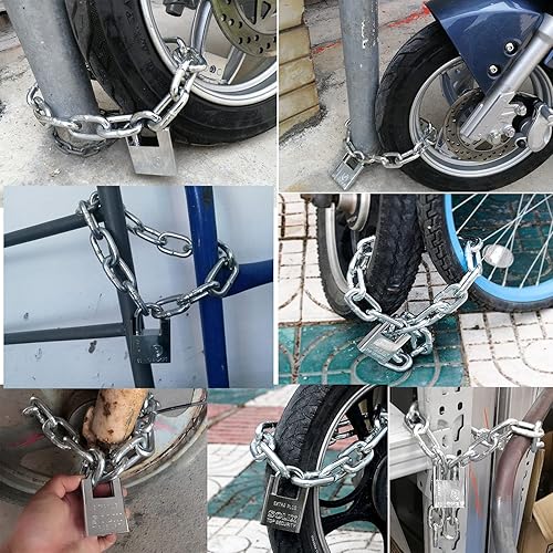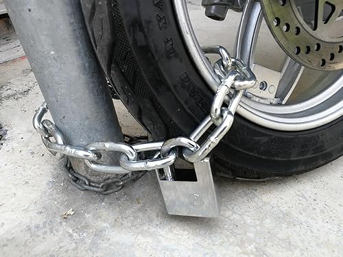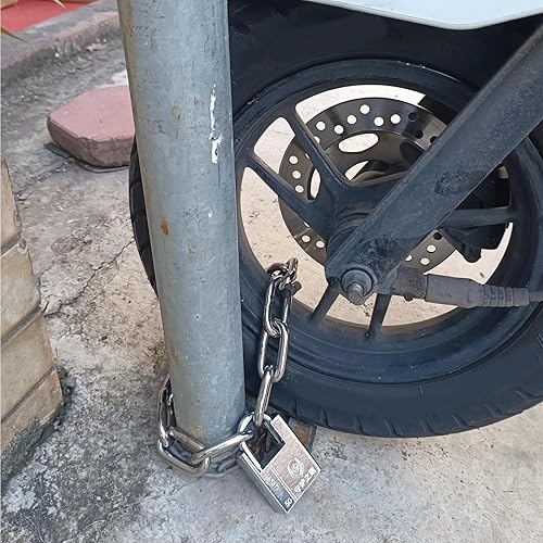 WANLIAN Motorrad Kettenschloss, 8mm Edelstahlkette und Vorhängeschloss mit 4 Schlüssel, für Pedelec, E-Bike, Zäune von Hoftoren, Garagen, Scooter, Fahrräder, Motorradschlösser, silver