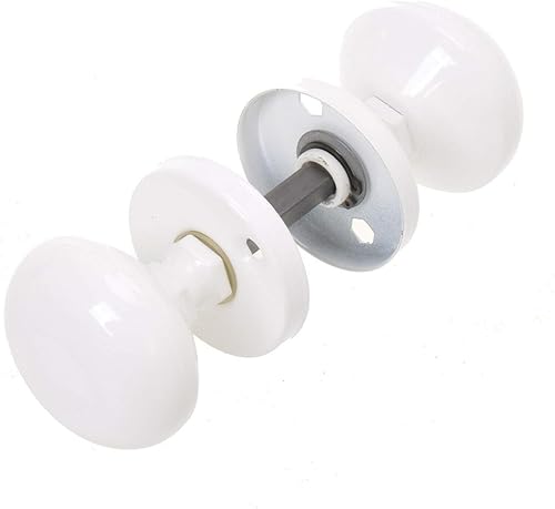 Aqbau Türknauf mit Rosette Rund Zweiteilig Weiß | Runder Türgriff für Innentüren und Außentüren Aluminium Pulverbeschichtet | Komplettes Set Türknöpfe inkl. Bolzen und Schrauben