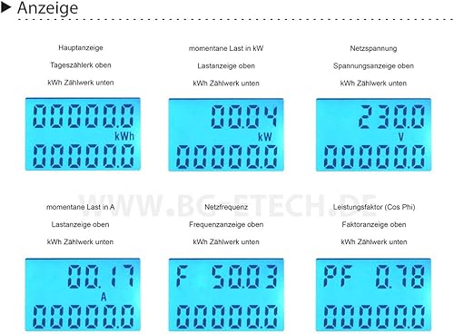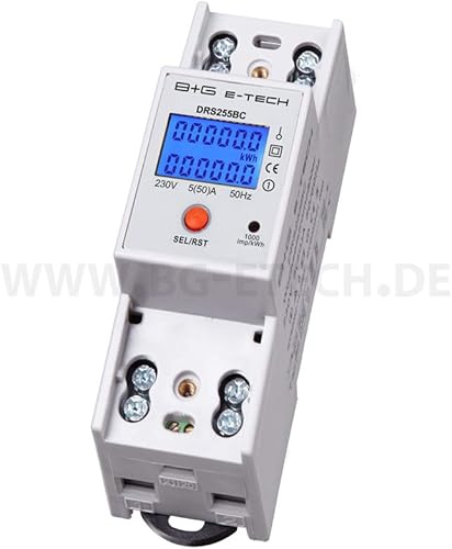 Stromzähler mit Tageszählfunktion digitaler Wechselstromzähler für DIN Hutschiene mit LCD, als Zwischenzähler geeignet bis 50A, 1000imp./kWh DRS255BC