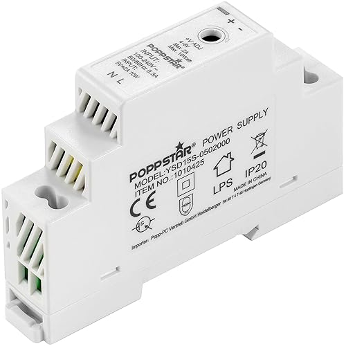 Poppstar Netzteil für Hutschiene 12V DC 1,25A 15 W (Input 100-240 V AC 50/60 Hz) DIN Rail Netzteil 12 V Trafo für Hutschienen 18 * 90 * 58mm