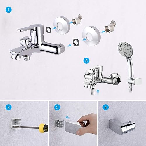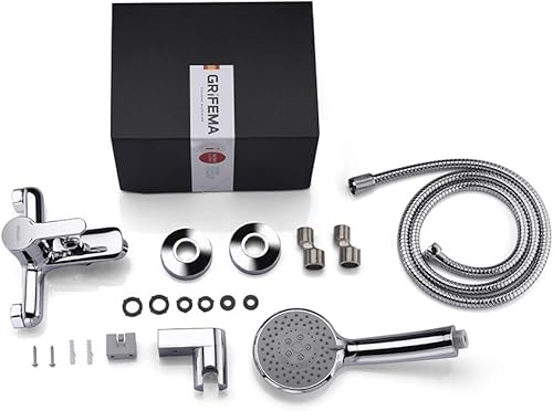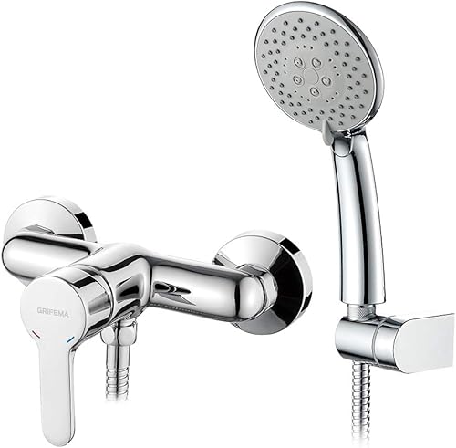 GRIFEMA PORTO-G12003 | Duscharmatur - Brausebatterie mit Brauseschlauch, Handbrause mit 5 Funktionen, und Brausehalter | Einhebel-Brausemischer-Dusche set, Chrom