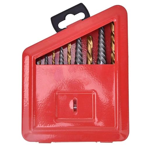 10PCS Screw Extractor und Left Hand Drill Set Stahl gebrochen Bolt Remover 5/64 Zoll bis 19/64 Zoll Titanbeschichtung Bohrer mit Metallgehäuse, stark, langlebig
