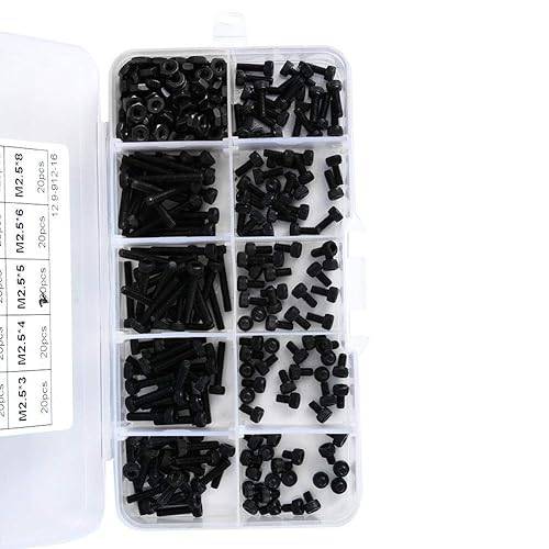 300 Stk. Innensechskantschraube, M2,5 x 3-20 mm Innensechskantschrauben, 12,9 Grad Sechskantschraube aus schwarzem legiertem Stahl Sechskantschraube mit Mutter