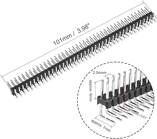 sourcing map 4 Stück Rechtwinklige Header Pin 80P 2 Reihig 2.54 mm Pitch Silber Ton für PCB