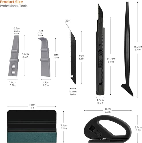 EHDIS 7 Stück Folierungs Werkzeug Auto Folierung Set Vinyl Wraps Tool Fenster Tönung Vinyl Wrap Werkzeuge Filzrakel Cuttermesser mit 10 Klingen Rakel für Car Wrapping Folie (Schwarz)