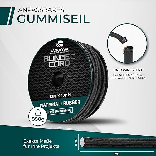 CargoVA Gummiseil 5mm 10m schwarz - Expanderseil 70% Dehnung - Wetterfestes Spannseil für Anhänger, Sonnensegel, Planen UVM