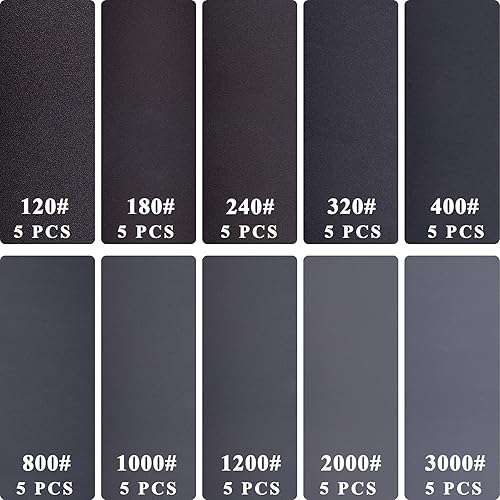 SIQUK 200 Stück Schleifpapier Nass mit Schleifklotz Set Schleifpapier Körnung 120/180/240/320/400/800/1000/1200/2000/3000 Schleifpapier Sortiment Sandpapier für Schleifen und Polieren