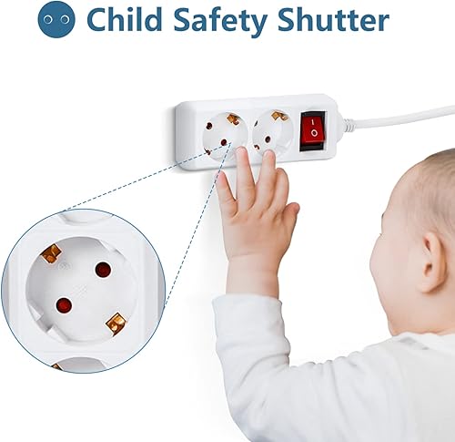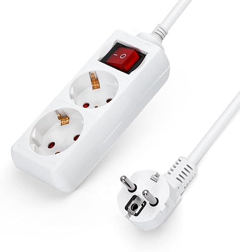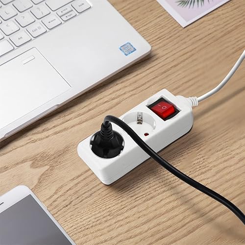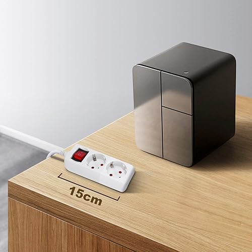 Aigostar Steckdosenleiste 2-fach mit Schalter Tischsteckdose Kindersicherung 3g1.0m㎡ 1.5 m Kabel, Weiß