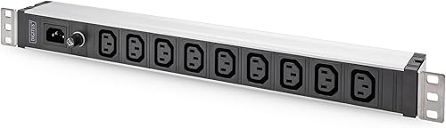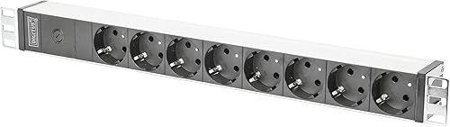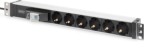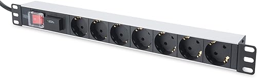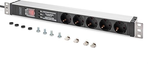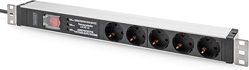 DIGITUS 19' Steckdosenleiste - 7 Abgriffe - 1HE - 250VAC - 50/60Hz - 16A - 4000W - Mit Schalter & Überspannungsschutz - Für 19 Zoll Netzwerk- und Serverschränke