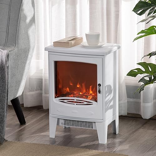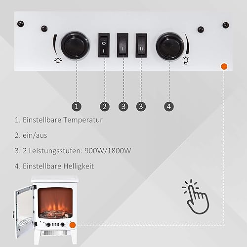 HOMCOM LED Elektrokamin Standkamin Kaminofen mit Flammeneffekt 900/1800W Metall ABS-Kunststoff Glas Weiß 39 x 26 x 54,8 cm
