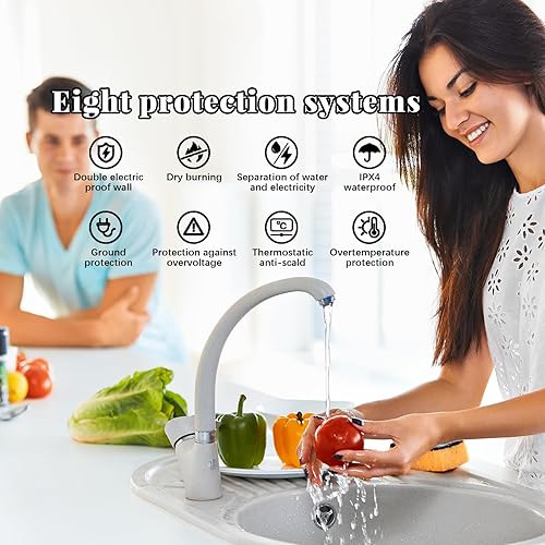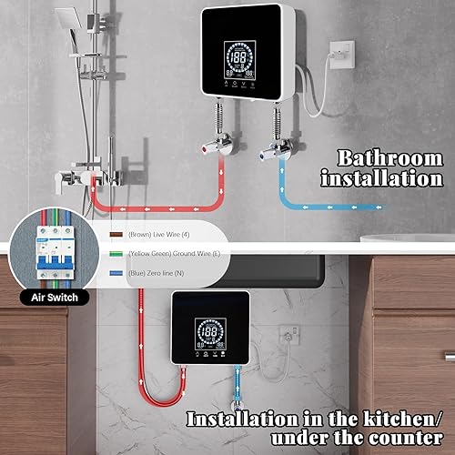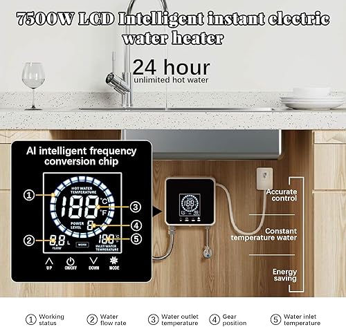 JAOGAUS Elektrische Durchlauferhitzer, 7500W Küche Durchlauferhitzer Tankless mit LED Digitalanzeige Panel, Warmwasserbereiter Energie Sparen, Schnelles Aufheizen, Touchscreen, Fernbedienung