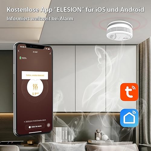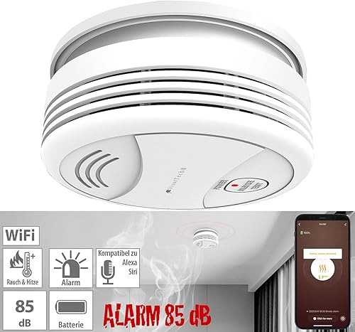 VisorTech Rauchmelder: WLAN-Rauchwarnmelder mit weltweiter App-Benachrichtigung, 85 dB (Rauchmelder Alexa, Sprachsteuerung, PC Halterung)