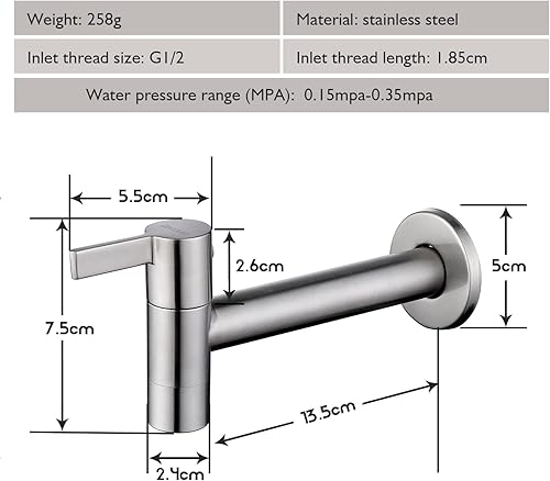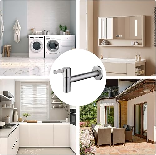Decaura Wasserhahn Kaltwasser Wandmontierter Edelstahl Kaltwasserhahn Wandmontage Lange kalte wasserhahn In Wand für Badezimmer, Waschbecken, Balkon, Küche