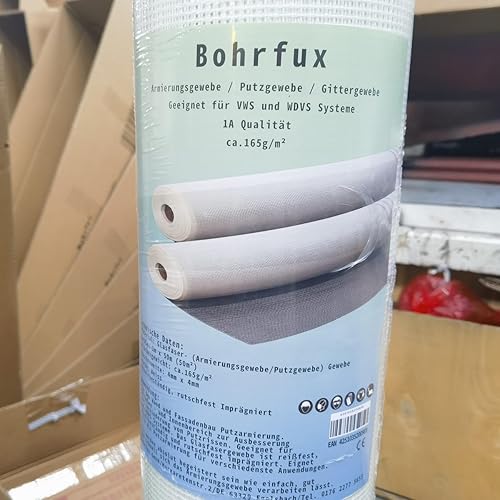 Putzgewebe 50m² (1m x 50m) Armierungsgewebe für Innen und Außen Gittergewebe 165g/m² Glasfasergewebe Fassade 4mm x 4mm Gewebe Putz geeignet für VWS und WDVS Systeme BOHRFUX