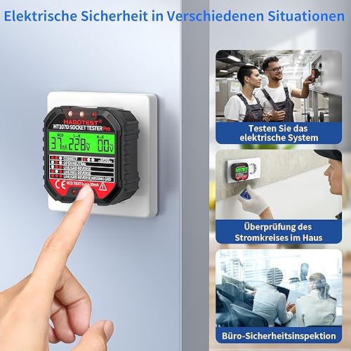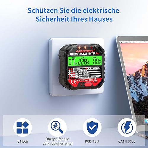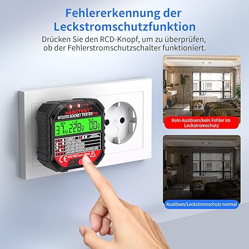 YEREADW Steckdosentester mit RCD-Prüfung, Steckdosenprüfgerät mit Kontrollleuchten-Anzeige, 6 Arten von Fehlerdiagnose, Spannungsprüfer FI Tester 90-250V/45-65Hz, CAT ll 300V