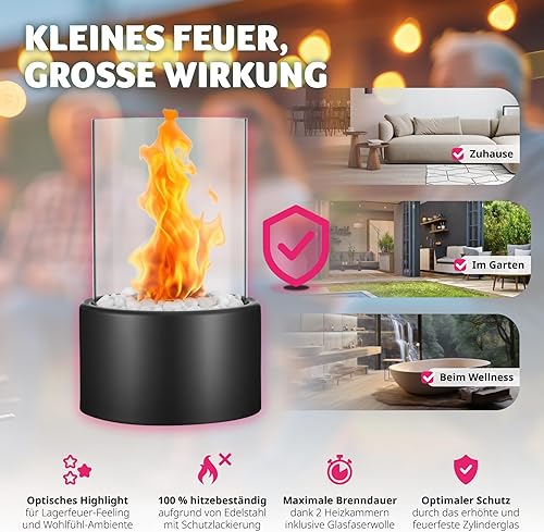 tectake® Bioethanol Tischkamin, Terrassen und Balkon Deko, Garten Deko Tischfeuer mit Ethanol, Wohnungs Zubehör oder Outdoor Camping Gadgets, Tischdeko für Wohnzimmer oder draußen
