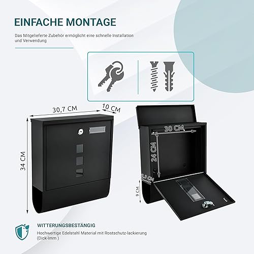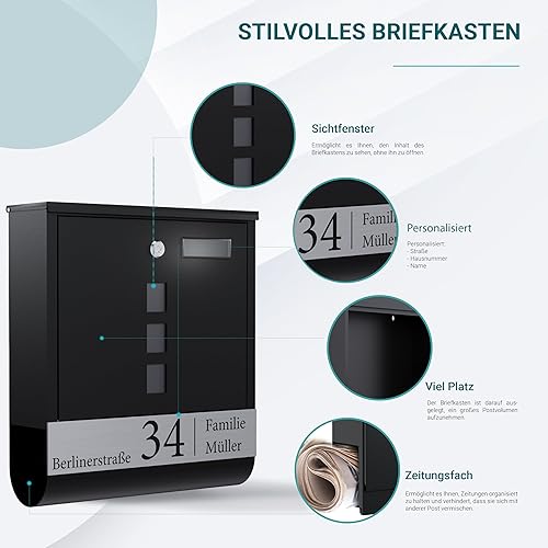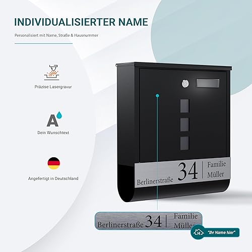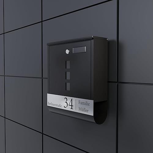 Bl4ckPrint Premium Briefkasten Anthrazit - Postkasten Zeitungsfach Sichtfenster personalisiert mit Familienname Straße und Hausnummer - hochwertiger Wandbriefkasten personalisiert
