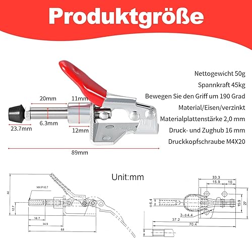 6 Stück Kniehebelspanner, Schnellspanner Spannklemme Waagrechtspanner Knebelklemme Niederhalter Verstellbar Horizontaler Klemme Handwerkszeug mit Schrauben für Maschinenbetrieb, Zimmerei, Schweißen