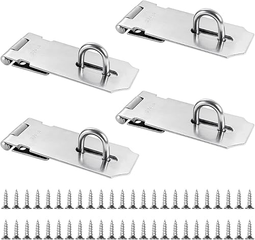 GOYADA 4 Stück Vorhängeschloss Haspe 4 Zoll, Edelstahl Riegelschloss Haspe, Edelstahl Schloss Überfalle mit Schrauben für Garten, Türen, Schränke (Silber)