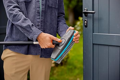 Gardena Cleansystem Stielbürste Soft: Bürste zum Reinigen von empfindlichen Oberflächen, weiche Borsten, drehbar, zum Anschluss an Cleansystem Stiel, ideal für größere Flächen (18810-20)