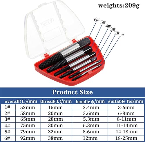 Fine jade2 Schraubenausdreher Set Profi Ausdreher Set Screw Extractor Kit Schraubenentferner für Beschädigte Schrauben, Rohre, M3-M25 (6 pcs)