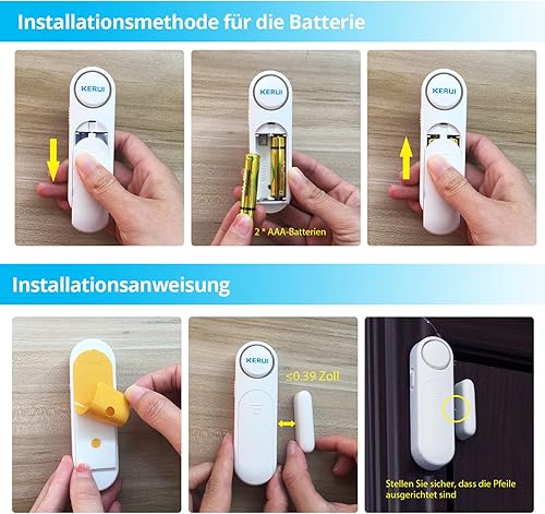 TOWODE Türalarm, Fensteralarm 120dB Kabellos Tür Fensterkontakt Sensor Alarm mit Fernbedienung 3 Modi Türalarm für Ihr Zuhause, Kinder, Laden Sicherhei