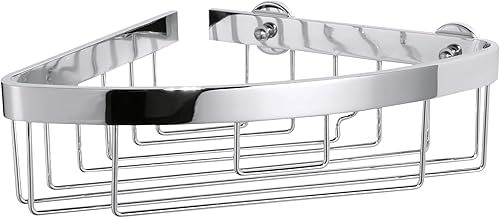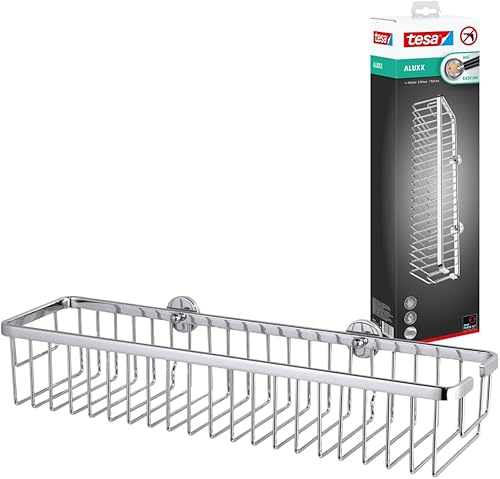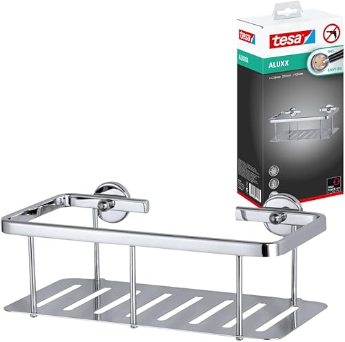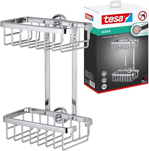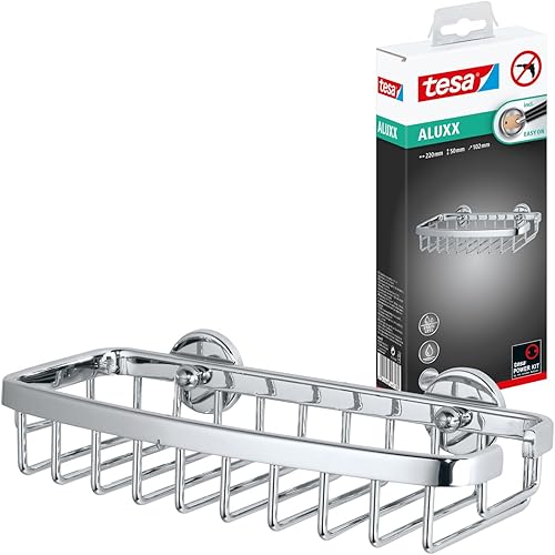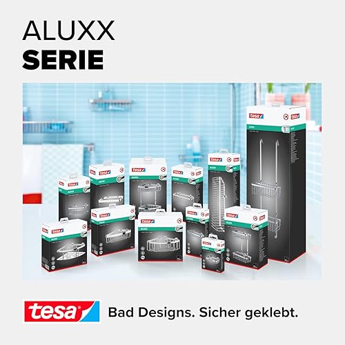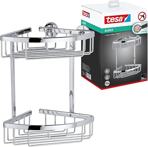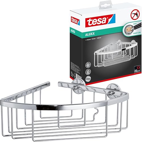 tesa ALUXX Eckduschkorb, Aluminium, verchromt, garantiert rostfrei, inkl. Klebelösung, 207 mm x 202 mm x 92 mm