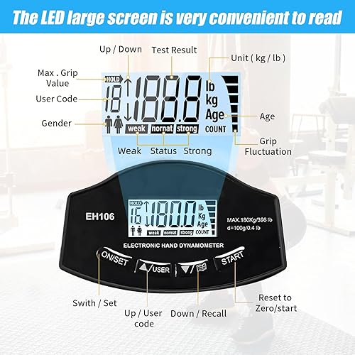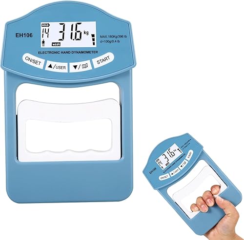 Digitaler Handkraftmessgerät 396lb/180kg, Hand-Dynamometer, Griffstärke-Messgerät/Trainer,Elektronische Griffkraft Messgerät,LED-Bildschirm mit USB-Ladekabel, Elektronischer Handgriff (Blau)