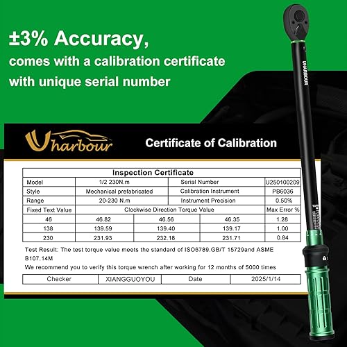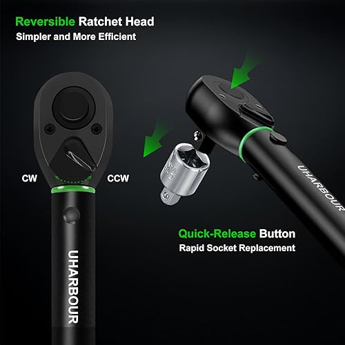 Uharbour 3/8 Drehmomentschlüssel 5-60Nm 0,1Nm Mikroeinstellung, ±3% Fehlergenauigkeit 72 Zähnen, Drehmomentschlüssel für Fahrrad Motorrad und Auto
