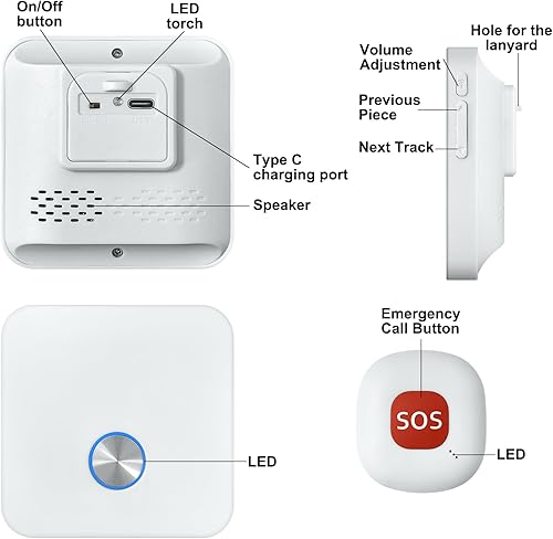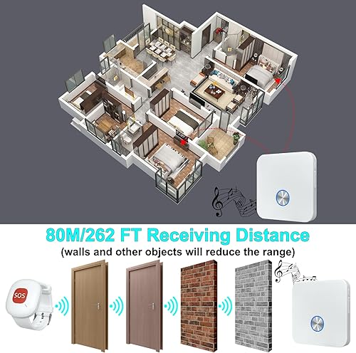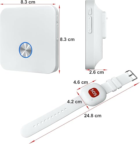 ALEENFOON Notrufknopf für Senioren mit Notruf Armband, Wireless Notruf Knopf Hausnotruf Panikalarm Wiederaufladbar Funkalarm für Pflegebedürftige Geduldig Älterer Kinder Behindert Schwangere (1 zu 1)