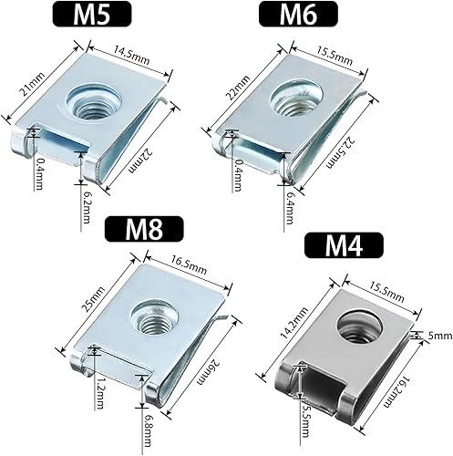 80 Stück Gewinde Clip Mutter Set, Blechmuttern,M4 M5 M6 M8 Schnappmutter Set Edelstahl Schlauchschellen Set mit Aufbewahrungsbox Flachwinkelmutter Befestigungssortiment Sortiment für Türverkleidungen