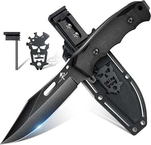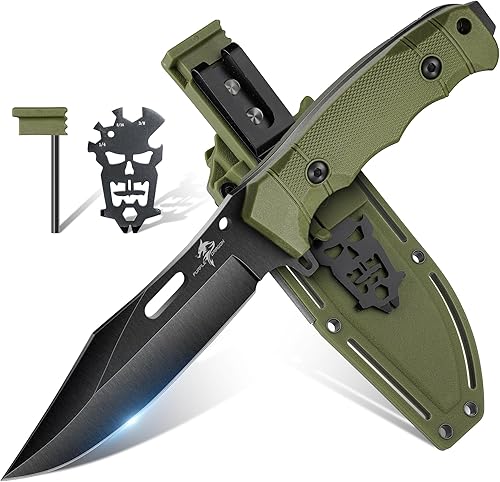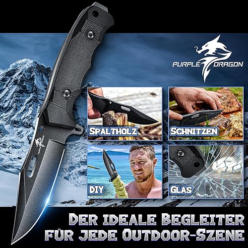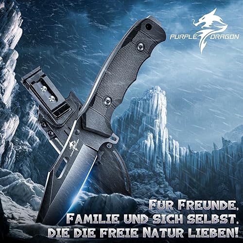 Purple Dragon Grünes Outdoor Messer mit Kydex Scheide, Full Tang Outdoor Messer Feststehend aus einem Stück D2 Stahl, Survival Messer für Bushcraft Camping Geschenke für Männer