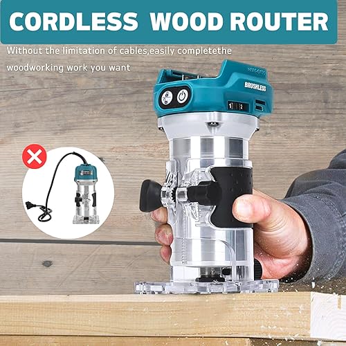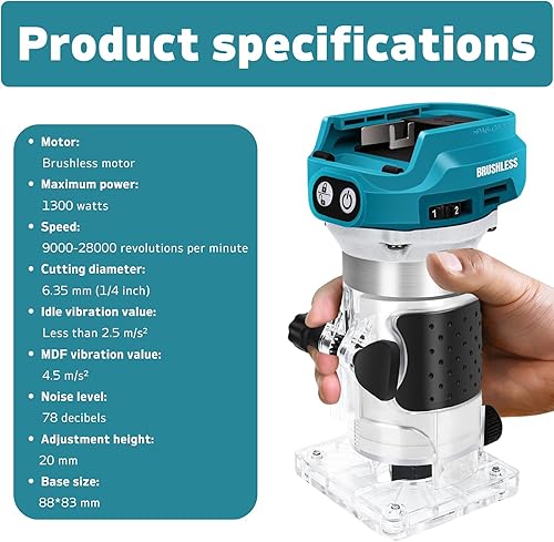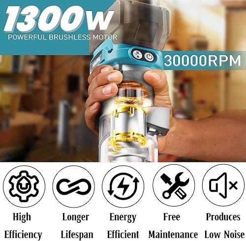 Akku Oberfräse kompatibel mit Makita 18V Akku, 1300W Akku Kantenfräser Oberfräse Trimmer Einhandfräse 6 Geschwindigkeit, 28.000 U/min Bürstenloser Trimmer Für Die Holzbearbeitung (no Akku)