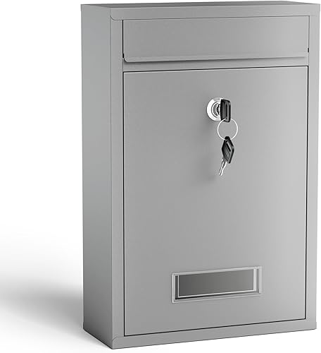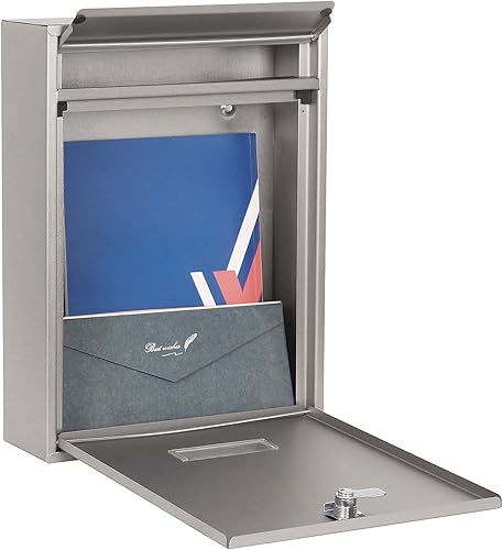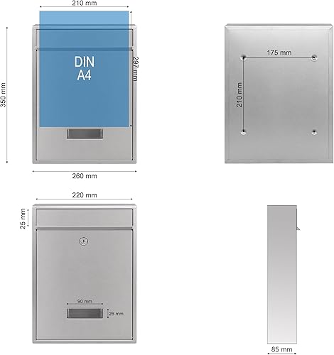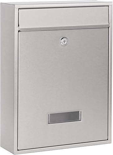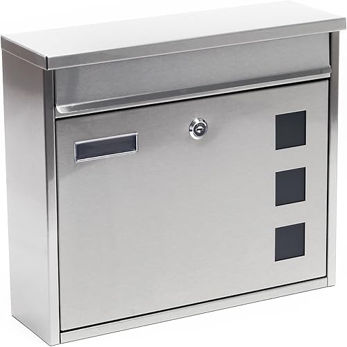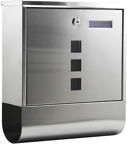 Wiltec Briefkasten mit Zeitungsrolle 305 x 95 x 335 mm, Wandbriefkasten mit Namensschild, Sichtfenstern, Schloss und Zeitungsrolle, Postkasten aus Edelstahl