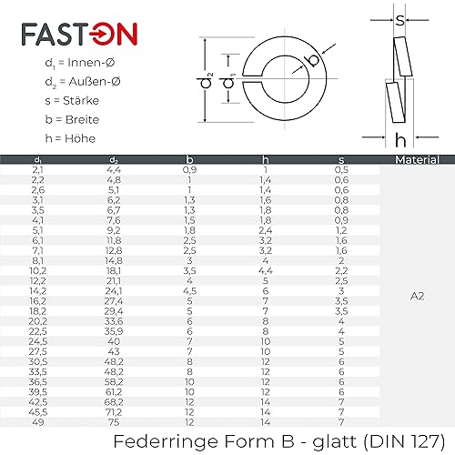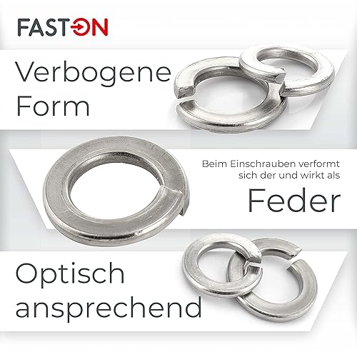 FASTON Federscheiben M10 Edelstahl A2 V2A (100 Stück) DIN 127 Federringe Sprengringe Unterlegscheiben Beilagscheiben