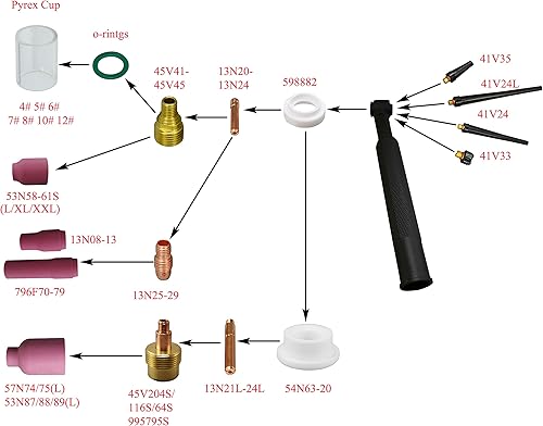 RIVERWELD TIG-Isolatorenbecher Gasdichtungen 598882 passen zu PTA DB SR WP 9 20 25 WIG-Schweißbrenner Paket von 5