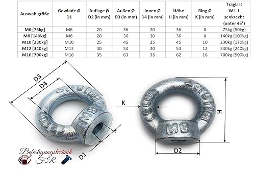Ringmutter galvanisch Verzinkt C15 - M12-5 Stück - Traglast: 340kg [ Größe Wählbar M6 M8 M10 M12 M16] Kranöse Zurröse Ösenmutter Augenmutter ähnl. DIN 582 (M12)