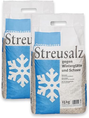 OPPENHÄUSER Premium Auftausalz 30kg deutsches Qualitäts-Streusalz für zuverlässige Eis- und Schneebeseitigung - 2x15kg