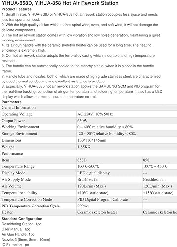Yihua 858D Heißluftstation SMD Rework Station 650W 100° C... 450 ° C 120L/Min