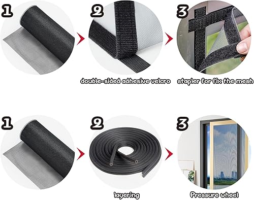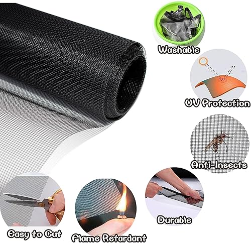 OVISEEN Fliegengitters Meterware 120 x 250 cm Fiberglas-Fliegengitter Gewebe, Insektenschutz Gaze Fenster Mesh, UV-beständig Individuell Zuschneidbar für Fenster und Türen (Schwarz)