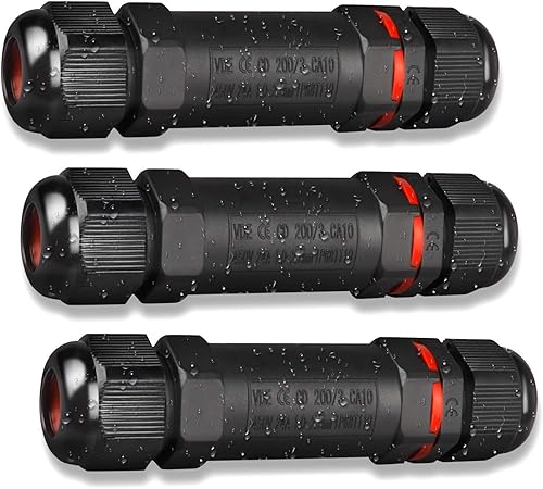 Kabelverbinder Wasserdicht IP68 3-Polig für Ø1-13 mm Kabeldurchmesser, 3 Stück Verteilerdose Außen Erdkabel Abzweigdose Garten Kabelmuffe Verbindungsmuffe Verbindungsbox, aus Nylon